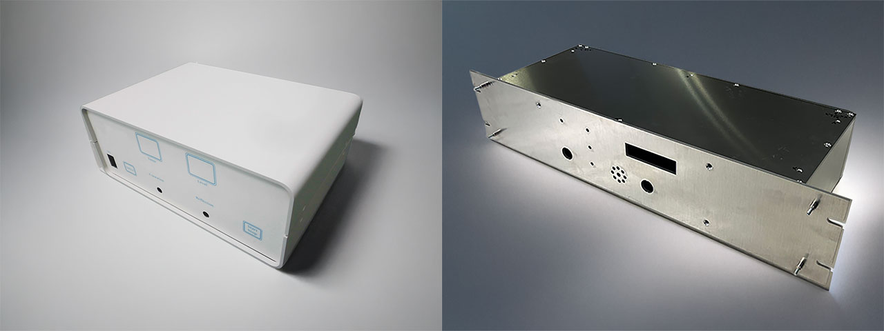 基板の組み込み工程や検査工程を確認しながら最小限のパーツ構成とし、さらに内部をアルミの生地仕上げとしたご提案をいたしました。